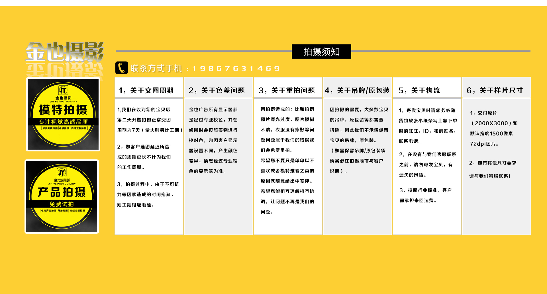 廣州金也攝影有限公司 聯系人:莊小姐 電話:19867631469(微信) 地址:廣州市白云區白云湖創意產業園G棟1樓 攝影空間103室 |